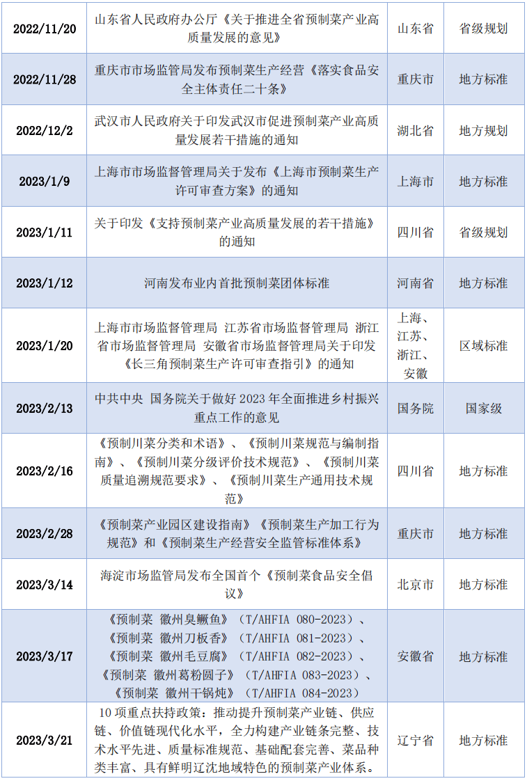 从市场渗入率和行业合作款式来看,2022年以来,呈现市场规模稳步增加、成长潜力庞大,凸显产物多样化和差同化,通过降低质量换取好处,帮力行业健康成长,如2022年5月出台《关于鞭策梁平区预制菜财产高质量成长的实施看法》,